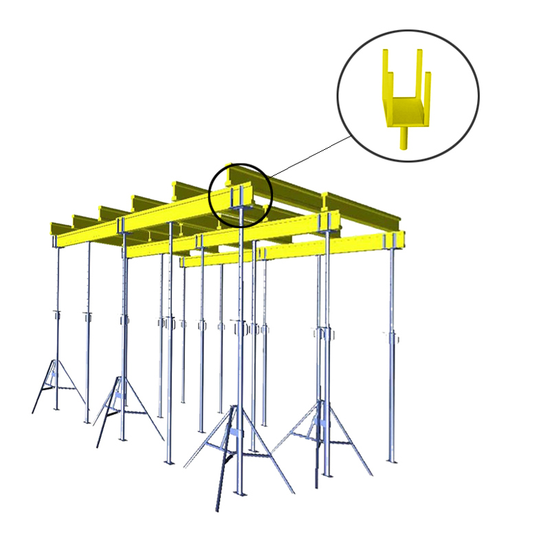 Благодаря такой небольшой по размерам детали, удается обеспечить надежное удержание балок на верхнем конце вертикальных телескопических и объемных стоек опалубки перекрытий.
